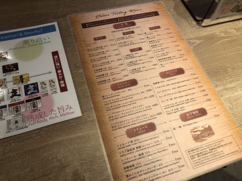 The great thing about Helios Distillery is that you can sample a variety of alcoholic beverages other than whiskey. You can also sample Japanese alcoholic beverages such as beer and shochu. They also offer Okinawan alcoholic beverages such as awamori and habu sake.